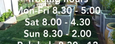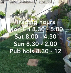 For all you garden requirements. STOCKIST of seedlings, pots, water features, stone, shrubs, succulents, fruit trees roses pot plants, standard trees, lawn dressing, fertilzers, compost, potting soil, culterra products, plastic pots, concrete pots, hanging baskets, what we do not have in stock we will try and get for you. Friendly staff. In house specials on a monthly basis. Read more