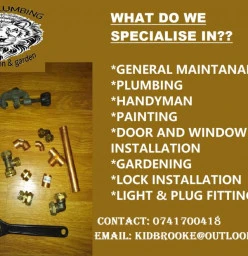 WE ARE A SMALL BUSNESS THAT AIMS TO PLEASE OUR COSTOMERS WITH QUALITY SERVICE AND QUIQE RESPONSE WE OFFER THE FOLLOWING PLUMBING ,PAINTING ,GENERAL MAINTENANCE FOR HOUSES AND BUILDINGS AT THE AN AFORDEBLE RATE Read more